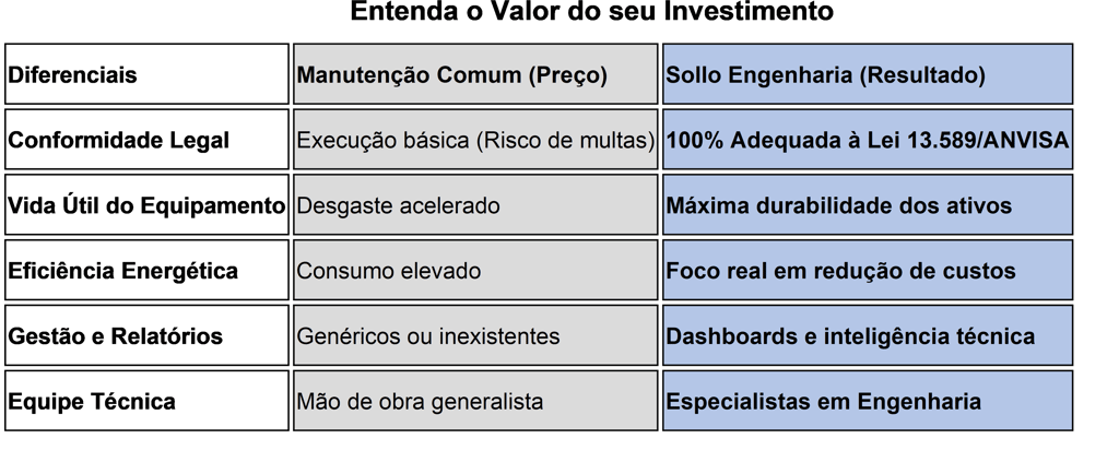 No documento anexo, detalhamos o plano técnico, os benefícios operacionais e o comparativo que demonstra porque a Sollo Engenharia representa uma parceria segura, responsável e tecnicamente alinhada às exigências do setor de saúde.